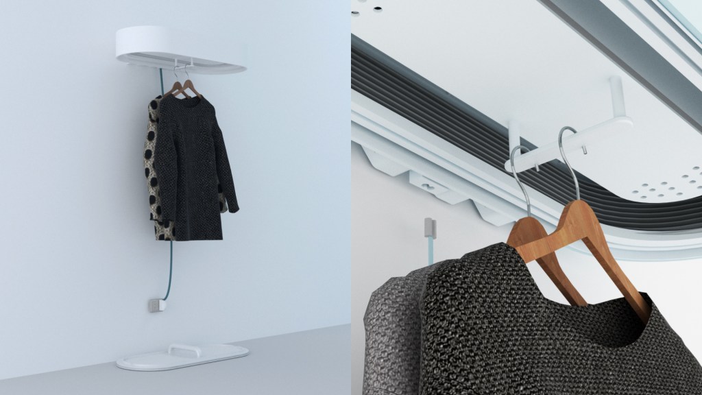 Aeriform is designed to be an additional equipment to the washing machine to refresh and sanitize clothes thanks to the great properties of ozone on textiles and fabrics. Up to four gaments and one pair of shoes can be sanitized at a time and clothes are easily placed into the cabinet using standard hangers. After the cycle, clothes will not need to be ironed or folded: they will be ready to be hanged back in the closet! Aeriform is mostly thought for those who spend the day out for work or pleasure and need to change outfits frequently.