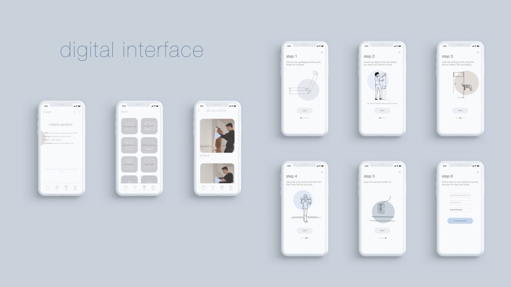 By scanning the QR printed on the packaging the user is redirected to the official app where tutorials and tips to install the product can be easily found. When the installation phase is completed, the user can start setting up his Aeriform by following the instructions on the app.