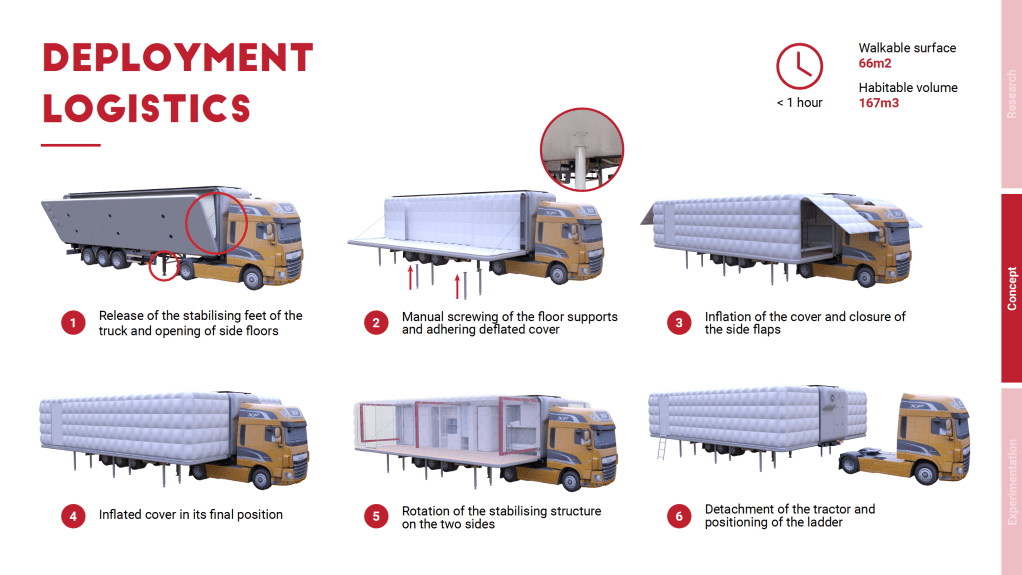 The module takes its name from the theory of the Multiverse, i.e. the hypothesis that more universes exist besides our own. The name is intended to emphasise the habitat’s versatility of use and transformability. When closed, its maximum dimensions are compatible with the standard load of a five-axle articulated truck.